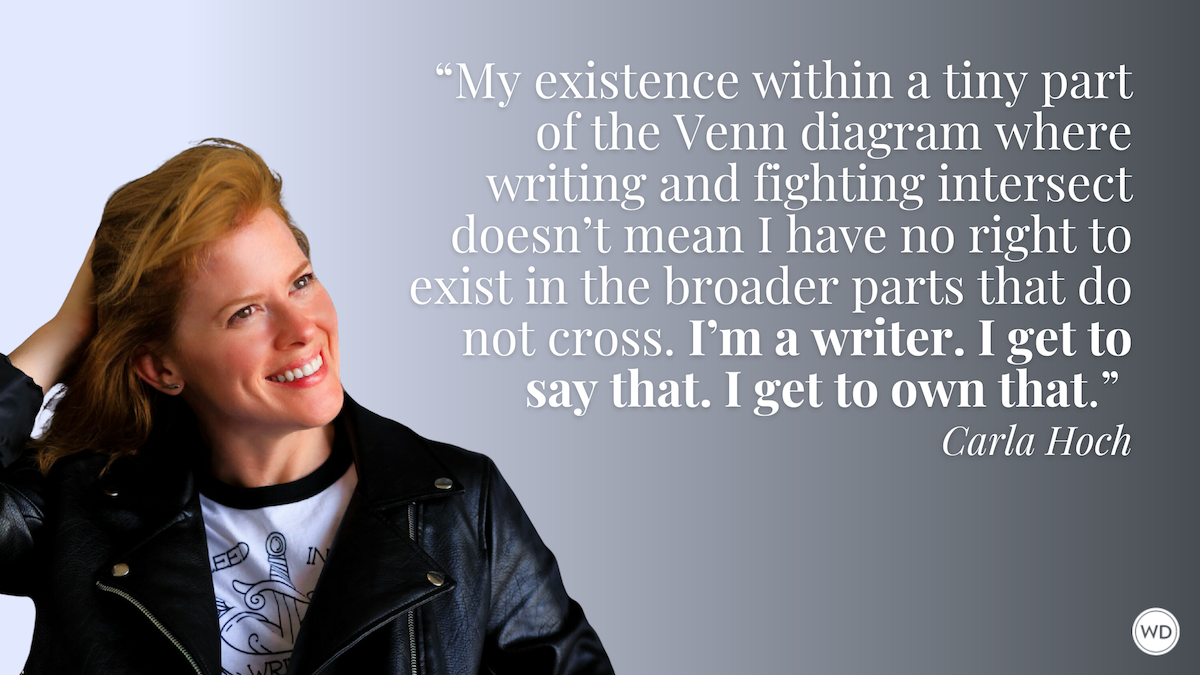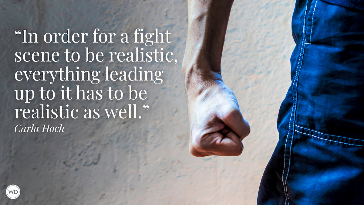 Carla Hoch is the award-winning blogger of FightWrite® and author of the Writer’s Digest book Fight Write: How to Write Believable Fight Scenes. She is a WDU instructor who regularly teaches on the craft of writing fight scenes, action, and violence as well as the mechanics of fighting for writers. Carla is a world champion jiujitsu player and has experience in almost a dozen fighting styles. She lives and trains outside Houston, Texas.